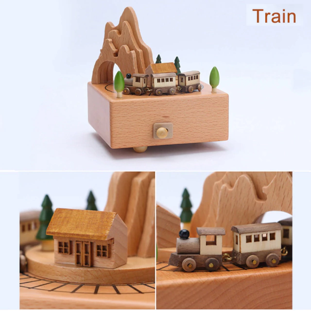 Todos os modelos possuem uma parte que se movimenta. Ao dar corda, é tocada uma linda e delicada música, e as peças se movem delicadamente.