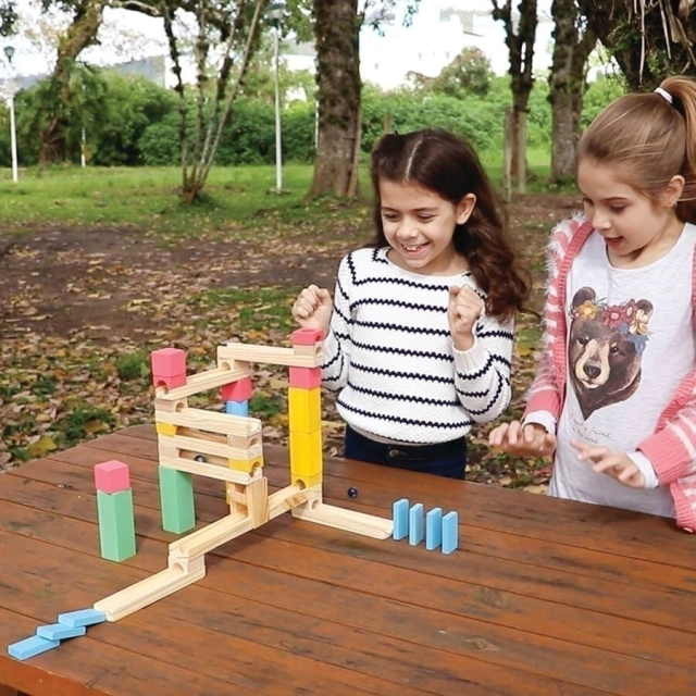 De forma divertida e estimulante, a criança aprende com a prática conceitos como força de gravidade, velocidade e aceleração, e desenvolve sua capacidade de solucionar problemas.
