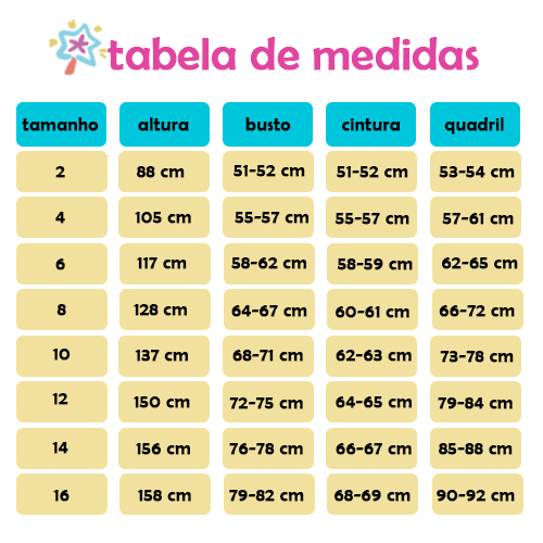 TABELA DE MEDIDAS DA CRIANÇA: